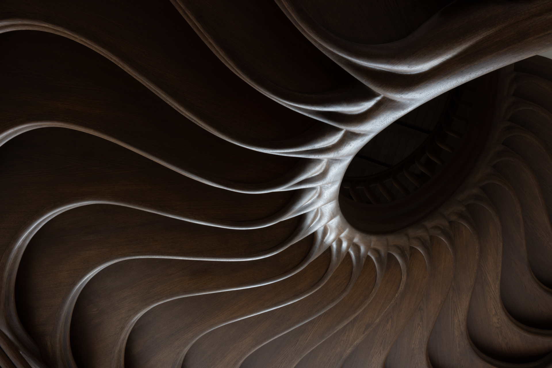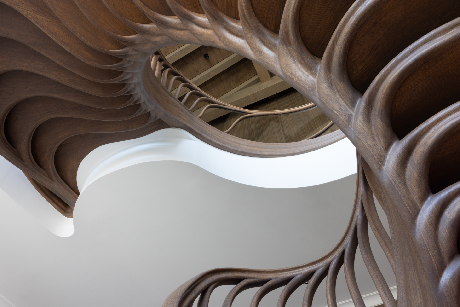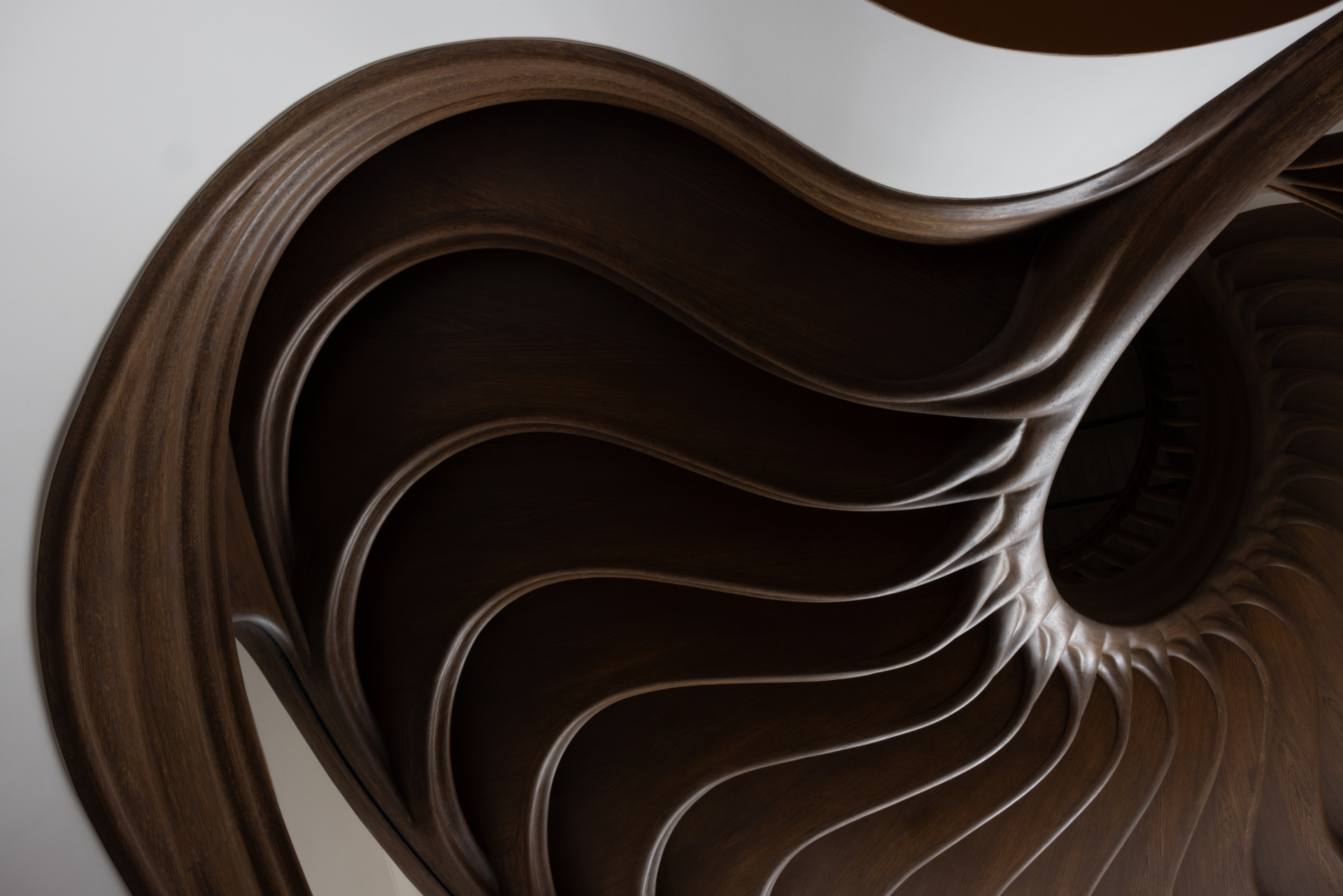 WOODEN STAIRCASE, SPIRAL STAIRCASE, ORGANIC STAIRCASE, HAND-CARVED WOODEN