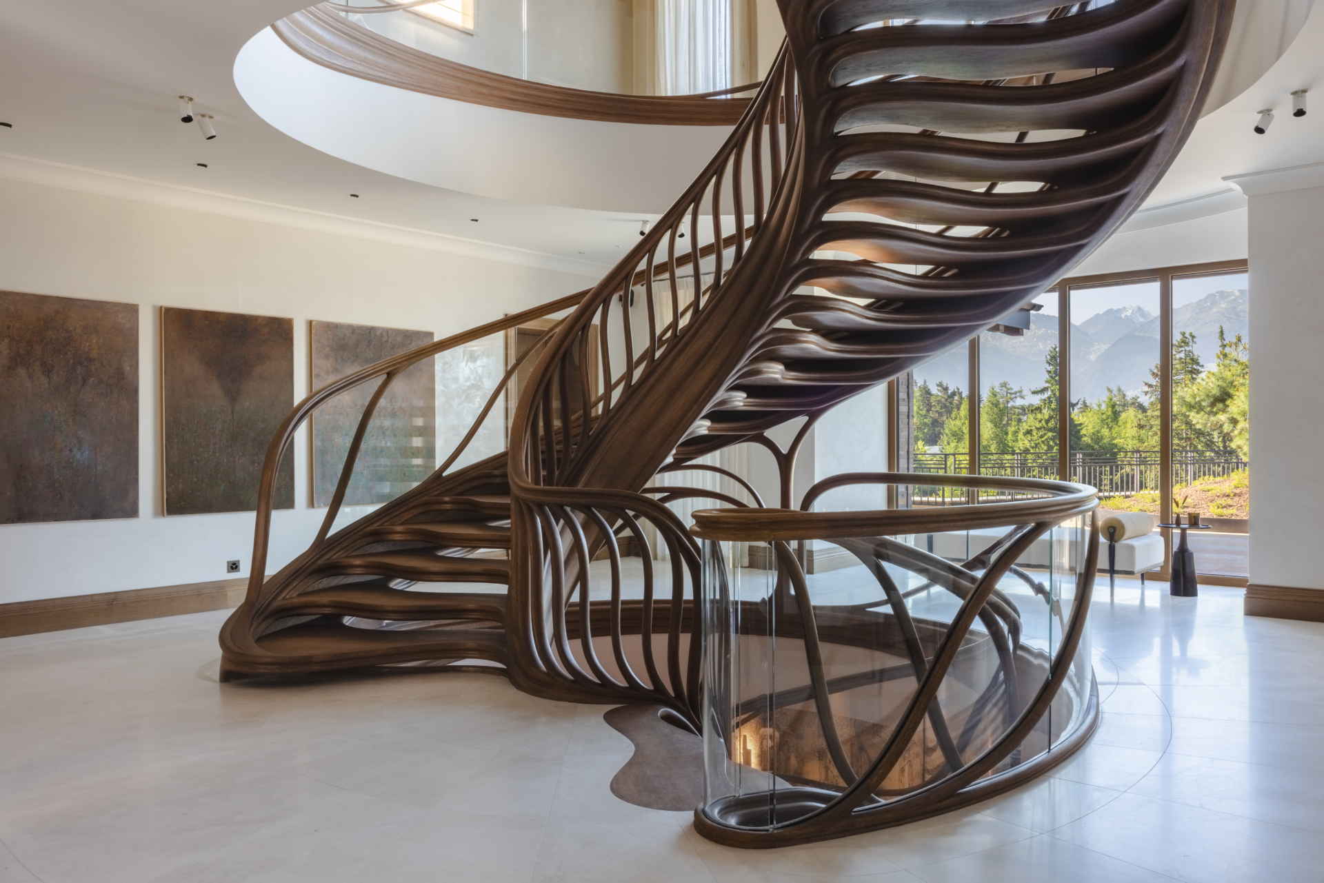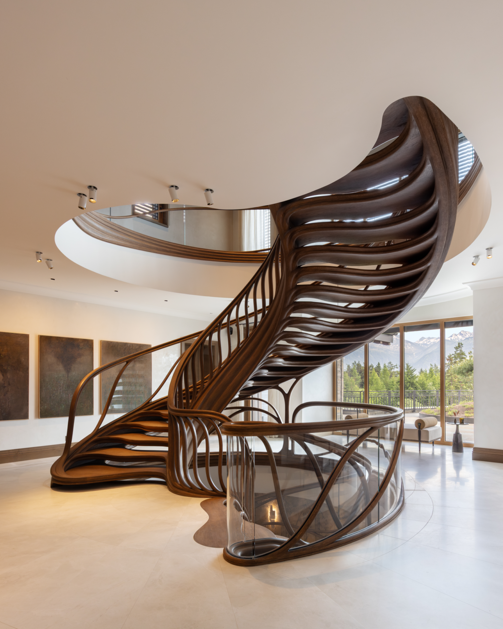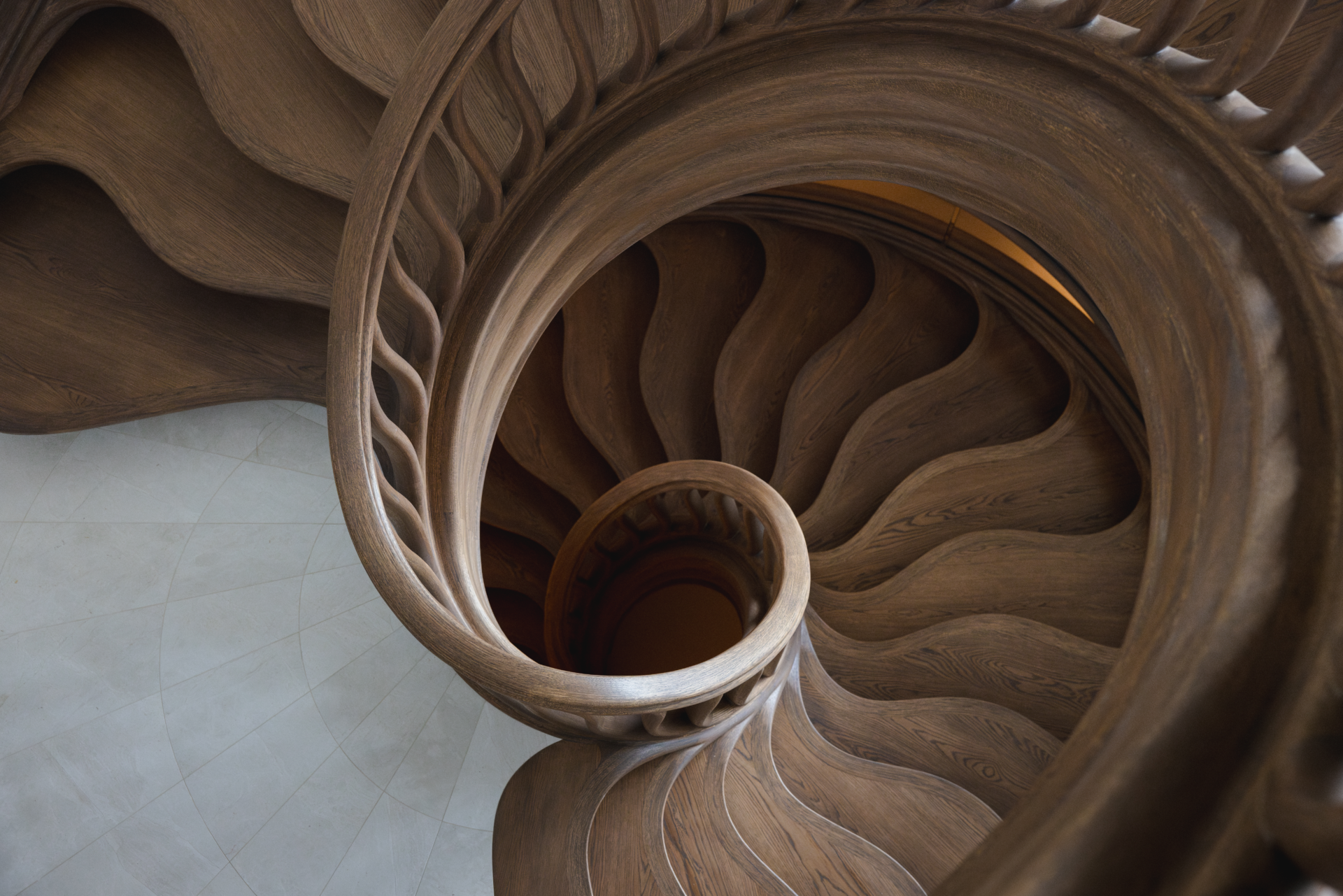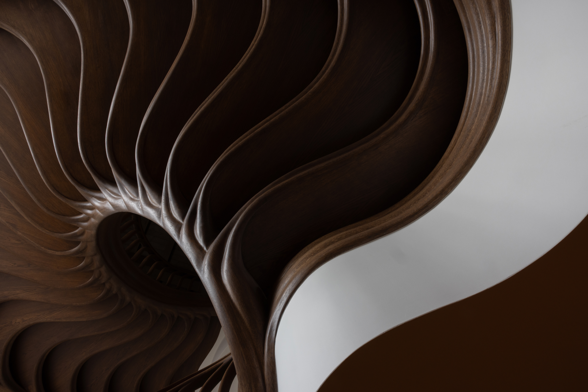 WOODEN STAIRCASE, SPIRAL STAIRCASE, ORGANIC STAIRCASE, HAND-CARVED WOODEN