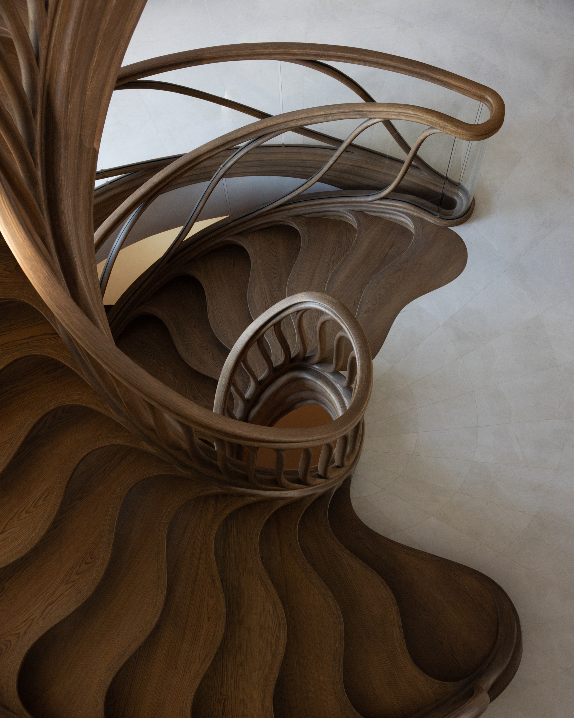 Geländerart: 3D handgeschnitztes organisches Holzgeländer in Sonderanfertigung