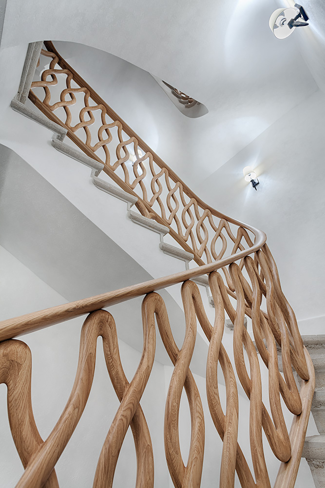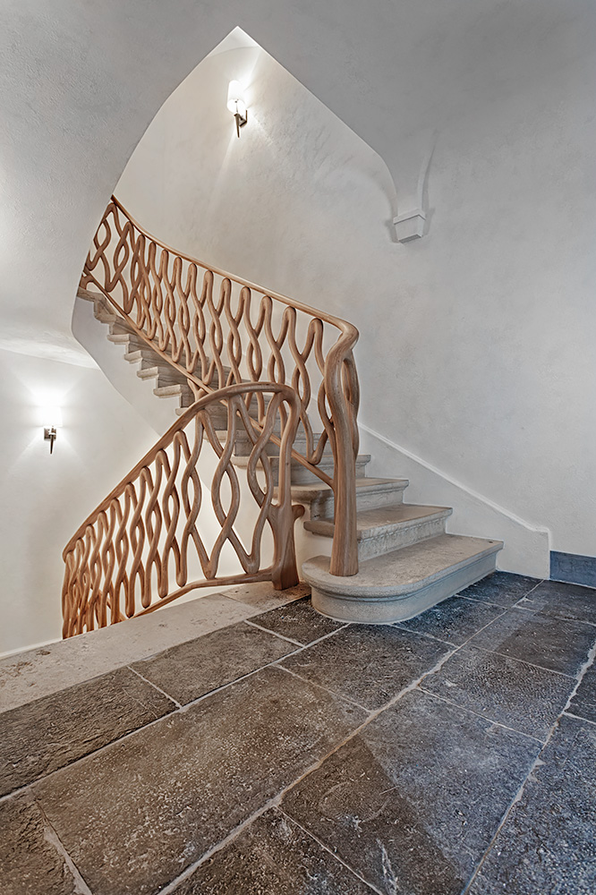 Geländerart: 3D handgeschnitztes Holzgeländer in Sonderanfertigung